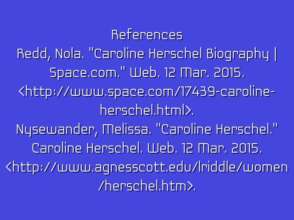 Nysewander, Melissa. "Caroline Herschel." Caroline Herschel. Web. 12 Mar. 2015. .