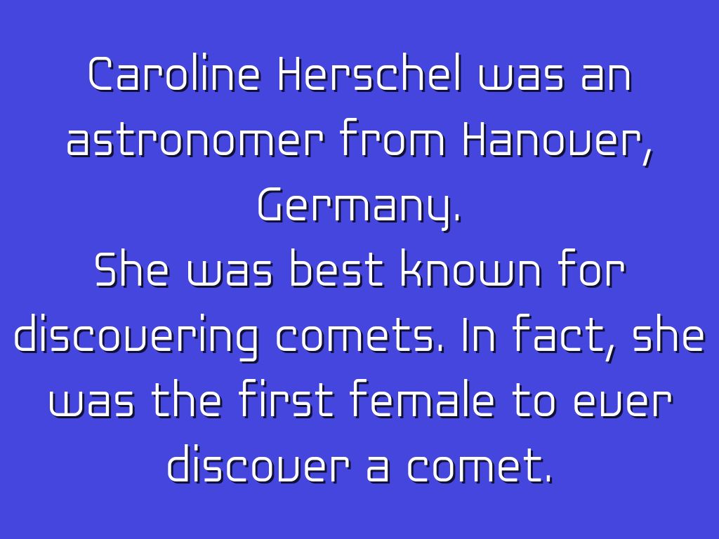 Caroline Herschel was an astronomer from Hanover, Germany.