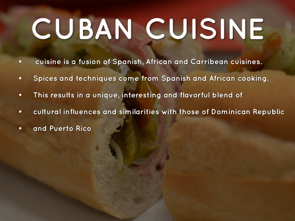 cuisine is a fusion of Spanish, African and Carribean cuisines.
