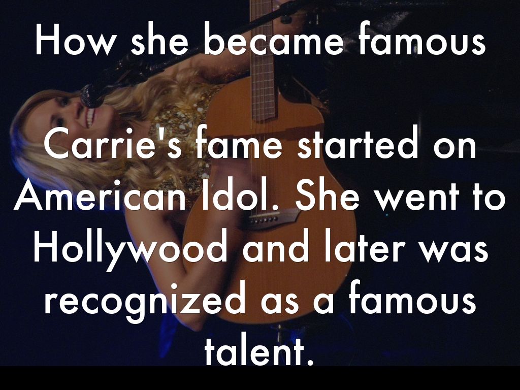 Carrie's fame started on American Idol. She went to Hollywood and later was recognized as a famous talent.
