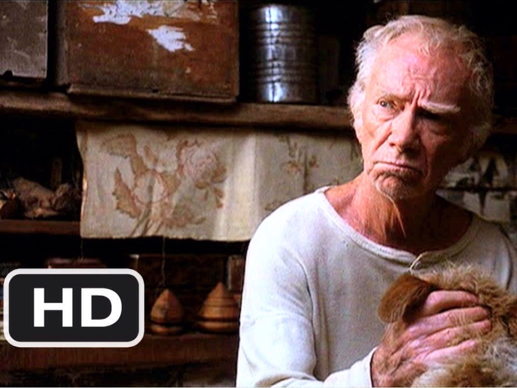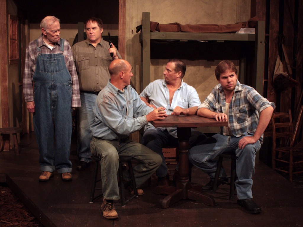 This is Candy holding onto his dog while Carlson is trying to talk him into Carlson shooting the dog in the back of the head and kill him. At first Candy disagreed with Carlson but then finally agreed.