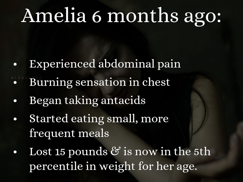 Lost 15 pounds & is now in the 5th percentile in weight for her age.