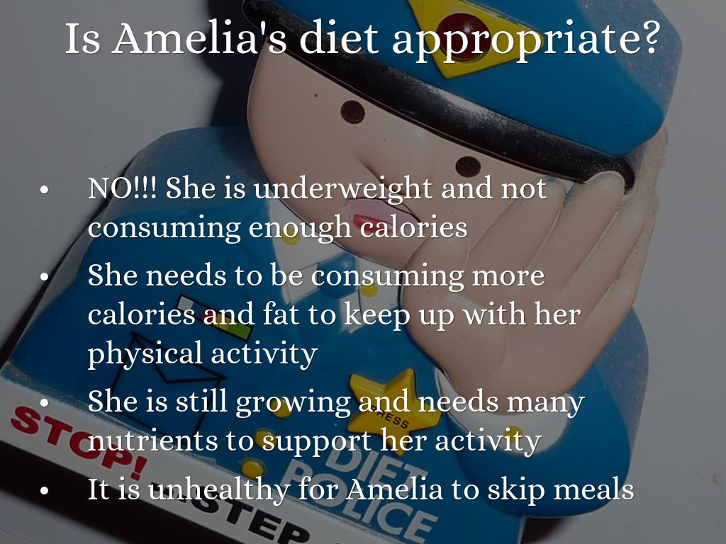 She needs to be consuming more calories and fat to keep up with her physical activity