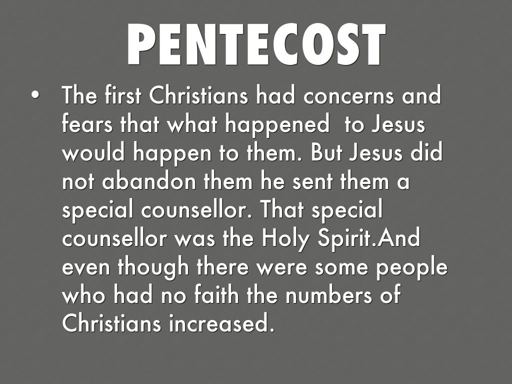 The first Christians had concerns and fears that what happened to Jesus would happen to them. But Jesus did not abandon them he sent them a special counsellor. That special counsellor was the Holy Spirit.And even though there were some people who had no faith the numbers of Christians increased.