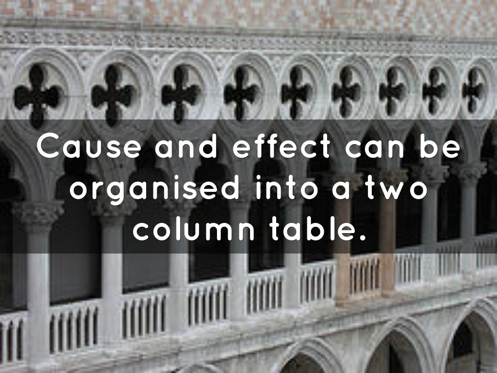 Cause and effect can be organised into a two column table.