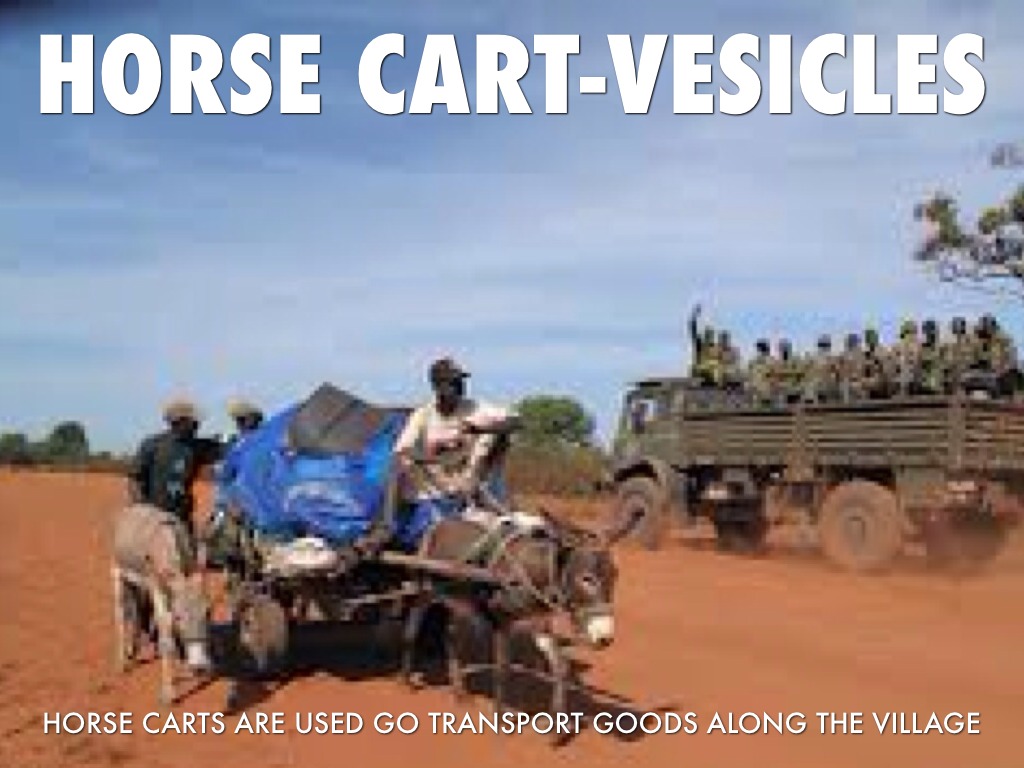 HORSE CARTS ARE USED GO TRANSPORT GOODS ALONG THE VILLAGE