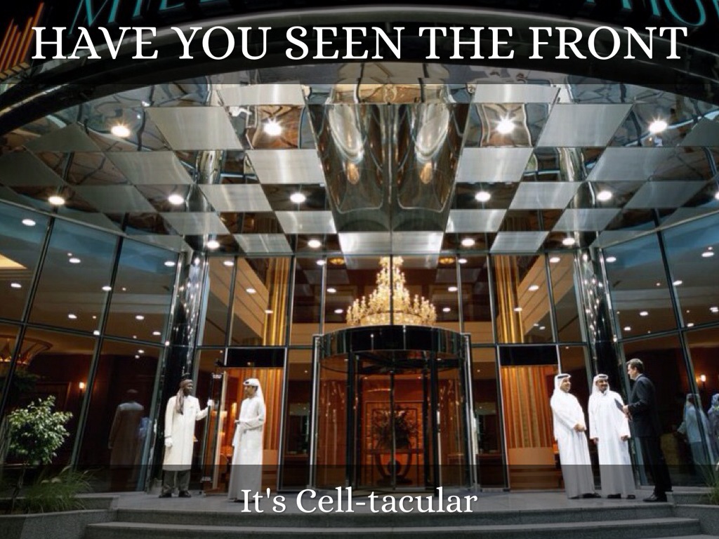 The Job of the cell membrane is to allow certain things in and out and I compared this to the entrance because without an entrance how are people so pose to get in and out of the hotel.