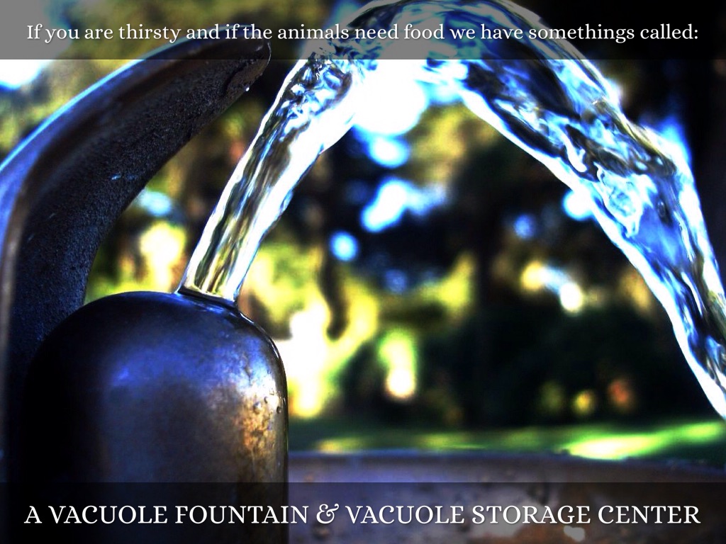 •Water fountains and storage centers are like vacuoles because they provide water to the people who are touring and who are thirsty, also they provide food for the animals.