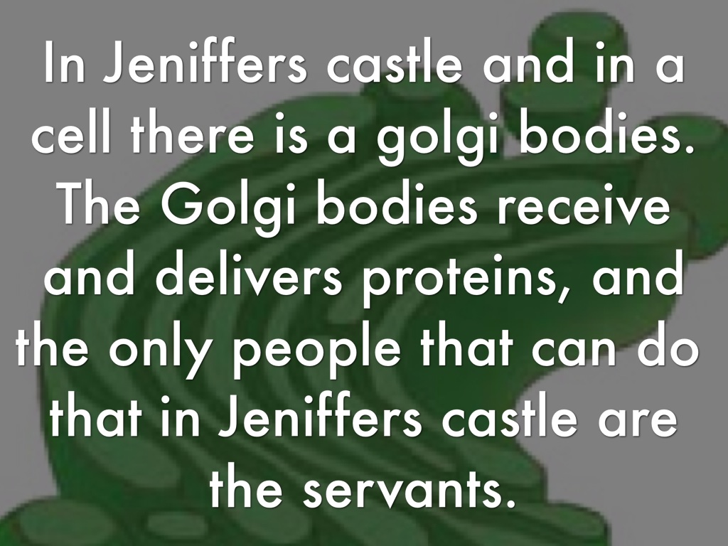 In Jeniffers castle and in a cell there is a golgi bodies. The Golgi bodies receive and delivers proteins, and the only people that can do that in Jeniffers castle are the servants.