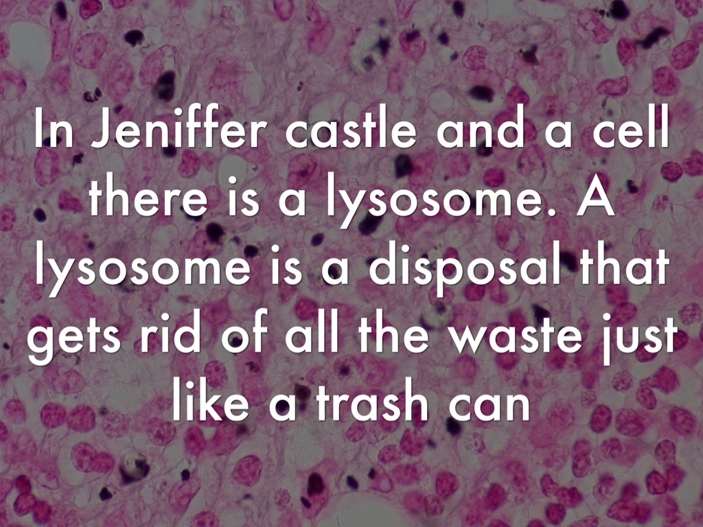 In Jeniffer castle and a cell there is a lysosome. A lysosome is a disposal that gets rid of all the waste just like a trash can
