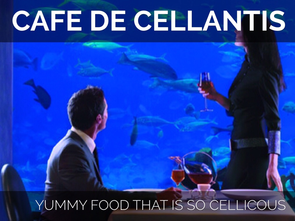 Cafe de Cellantis would be the ribosome because it is the food of Cellantis.The ribosomes is the food/protein of the cell.People go and eat this delicious food created by specialty chefs.