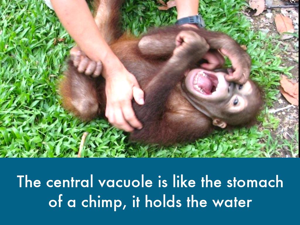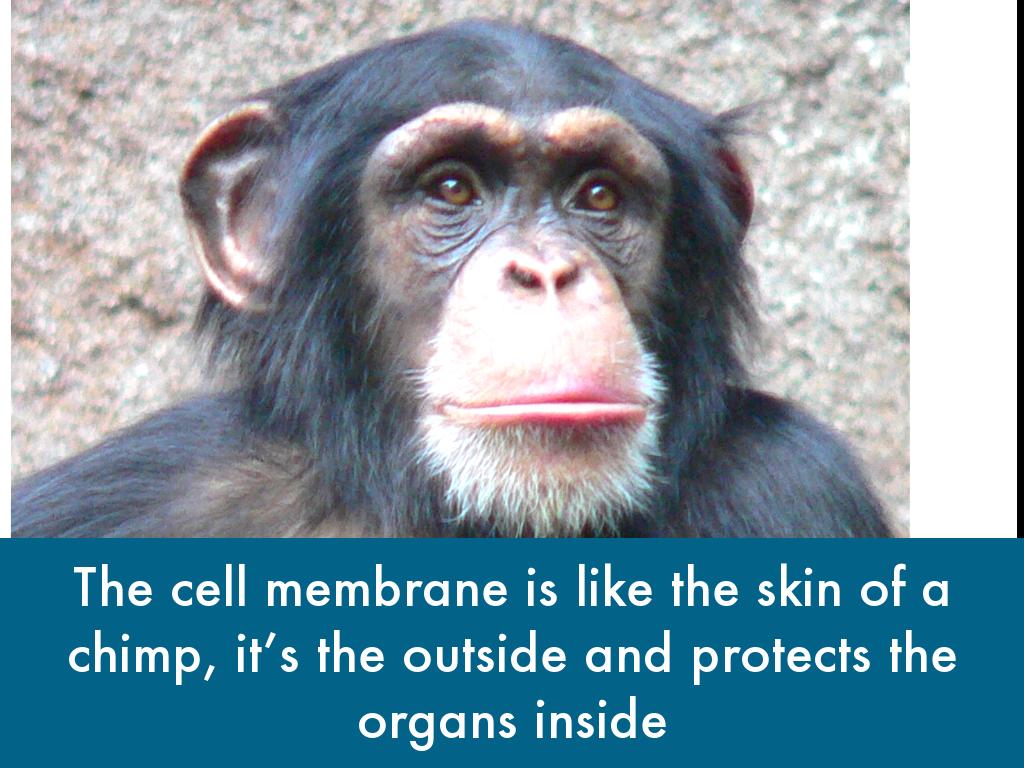 The cell membrane is like the skin of a chimp, it’s the outside and protects the organs inside