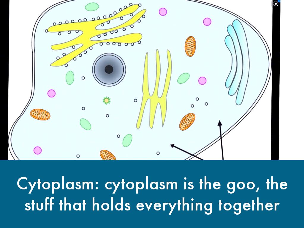 Cytoplasm: cytoplasm is the goo, the stuff that holds everything together