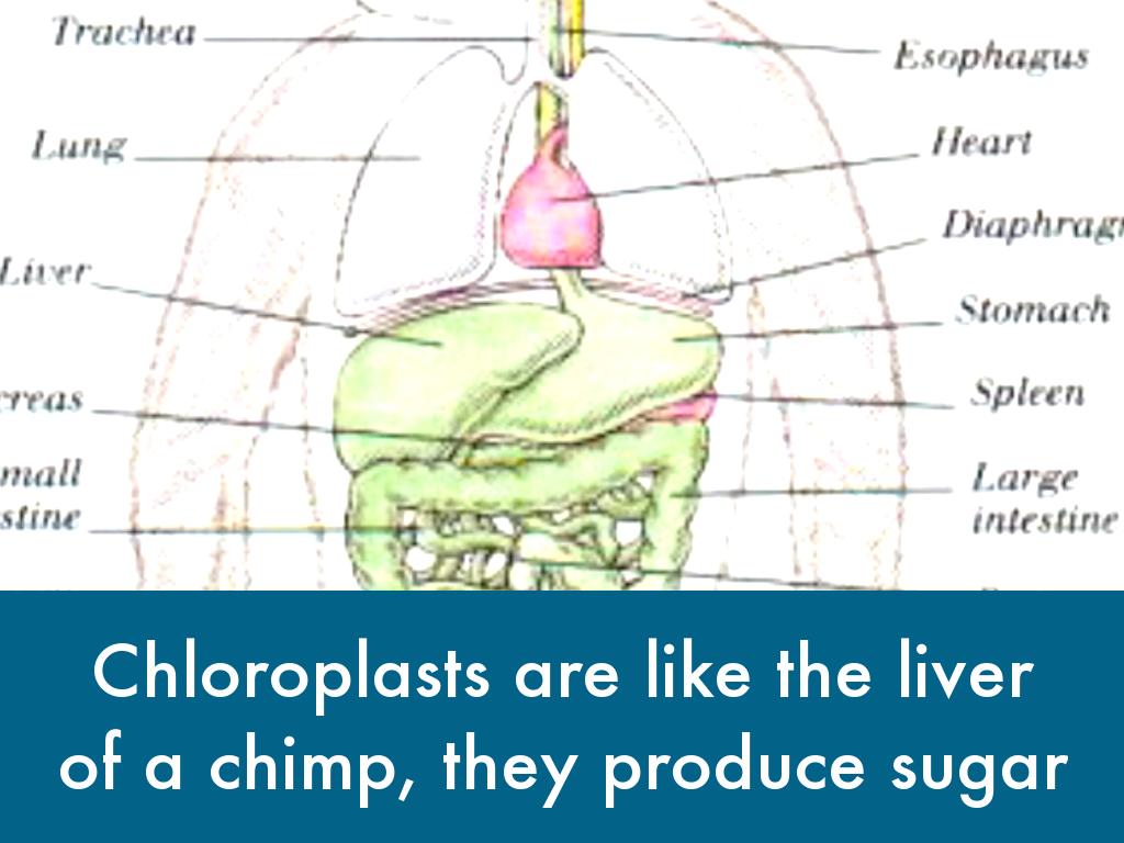 Chloroplasts are like the liver of a chimp, they produce sugar