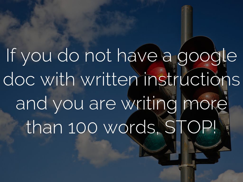 If you do not have a google doc with written instructions and you are writing more than 100 words, STOP!