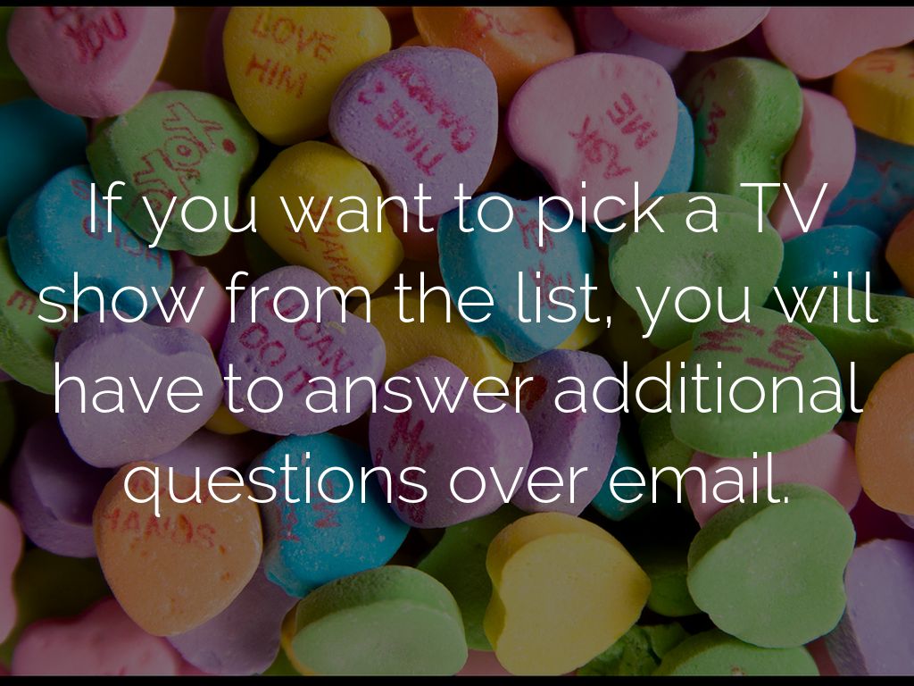 If you want to pick a TV show from the list, you will have to answer additional questions over email.
