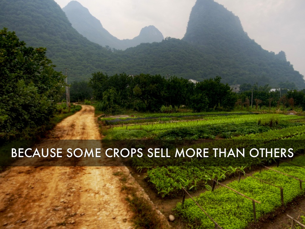 BECAUSE SOME CROPS SELL MORE THAN OTHERS