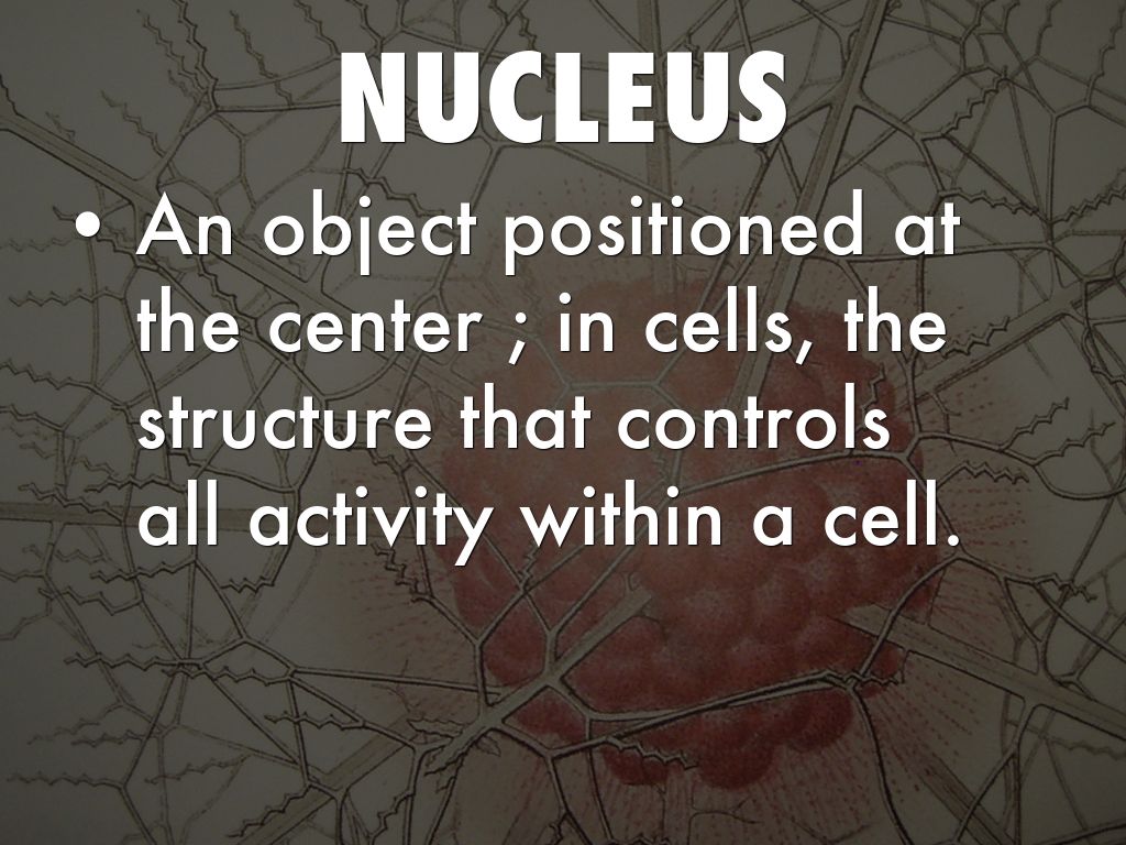 An object positioned at the center ; in cells, the structure that controls all activity within a cell.