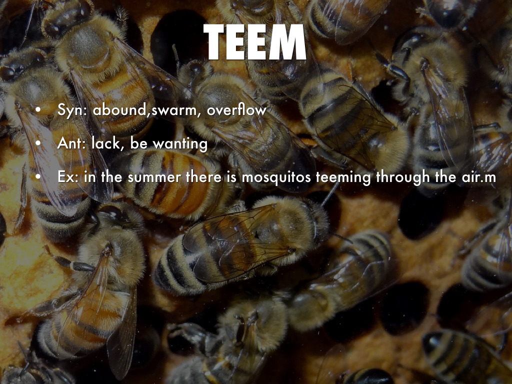 • Ex: in the summer there is mosquitos teeming through the air.m