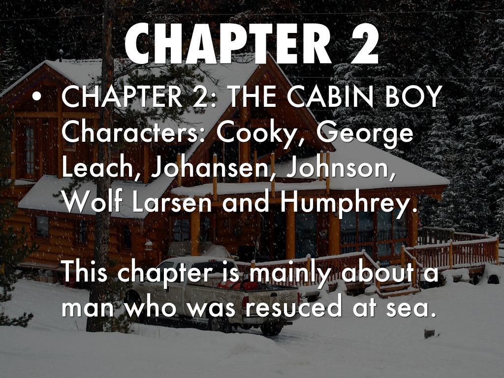 CHAPTER 2: THE CABIN BOY Characters: Cooky, George Leach, Johansen, Johnson, Wolf Larsen and Humphrey. This chapter is mainly about a man who was resuced at sea.