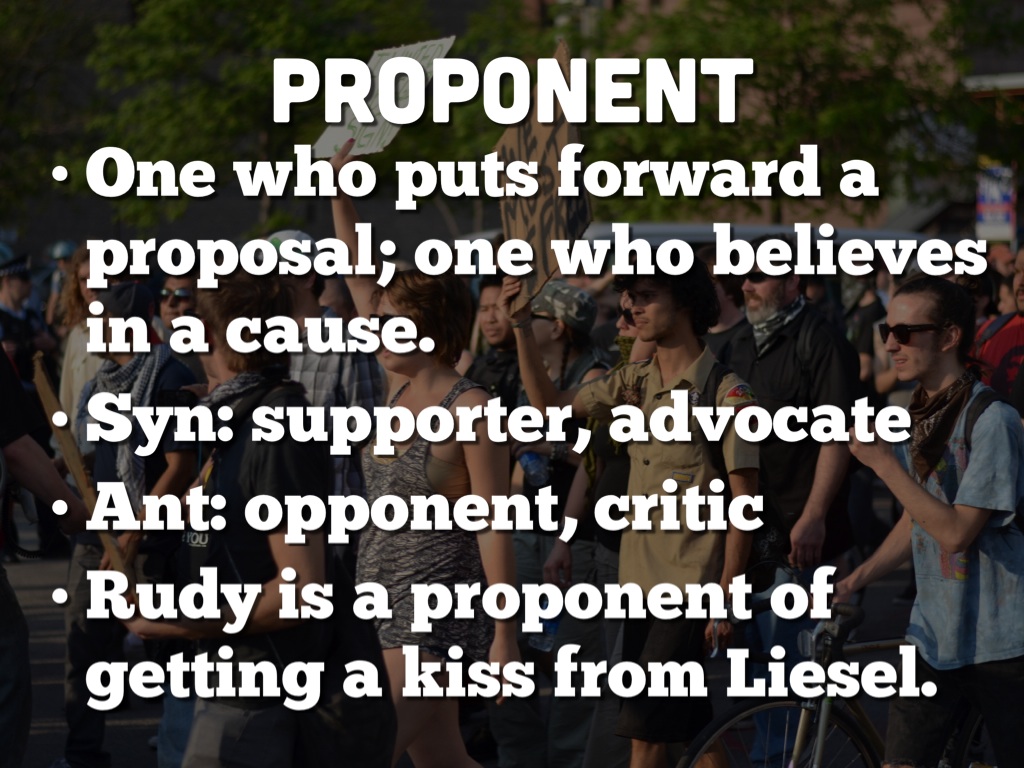 One who puts forward a proposal; one who believes in a cause.