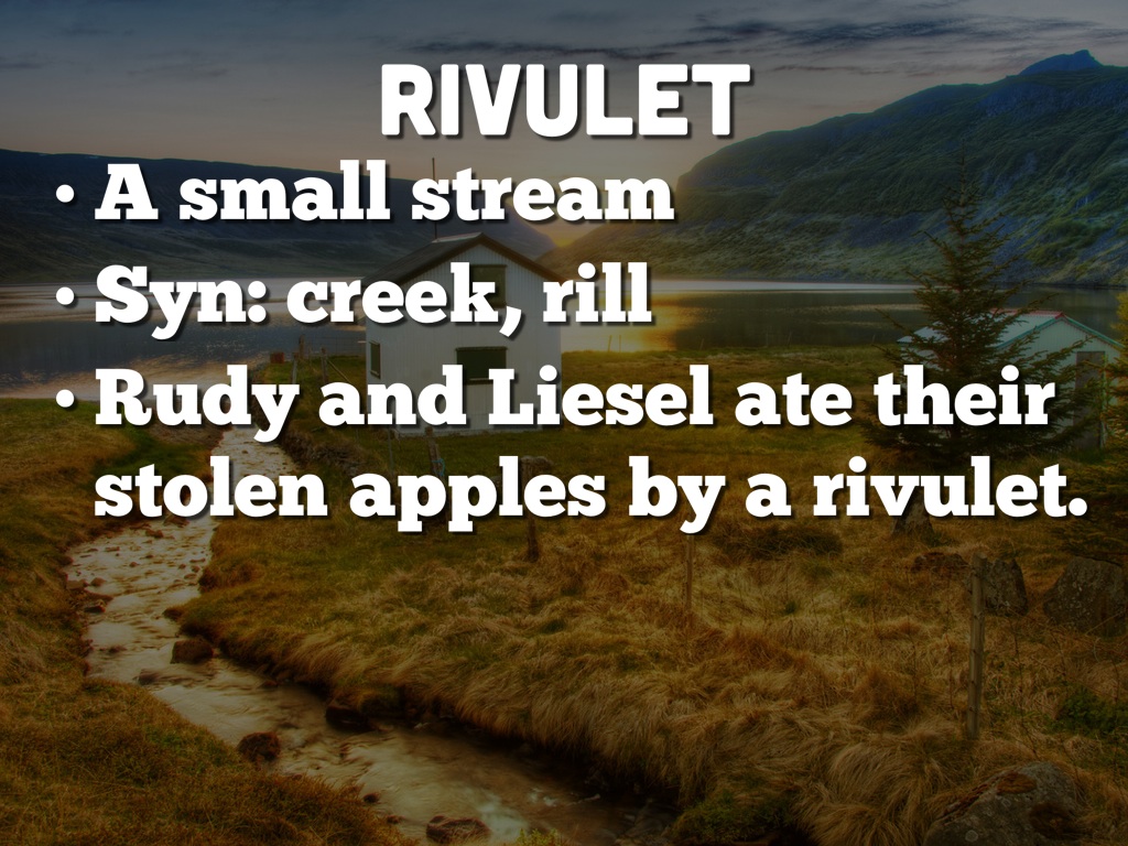 Rudy and Liesel ate their stolen apples by a rivulet.