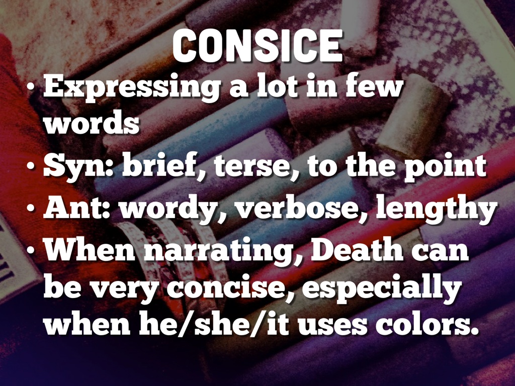 When narrating, Death can be very concise, especially when he/she/it uses colors.