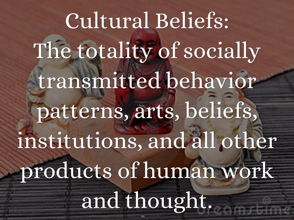 The totality of socially transmitted behavior patterns, arts, beliefs, institutions, and all other products of human work and thought.