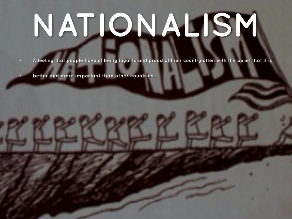 • A feeling that people have of being loyal to and proud of their country often with the belief that it is
