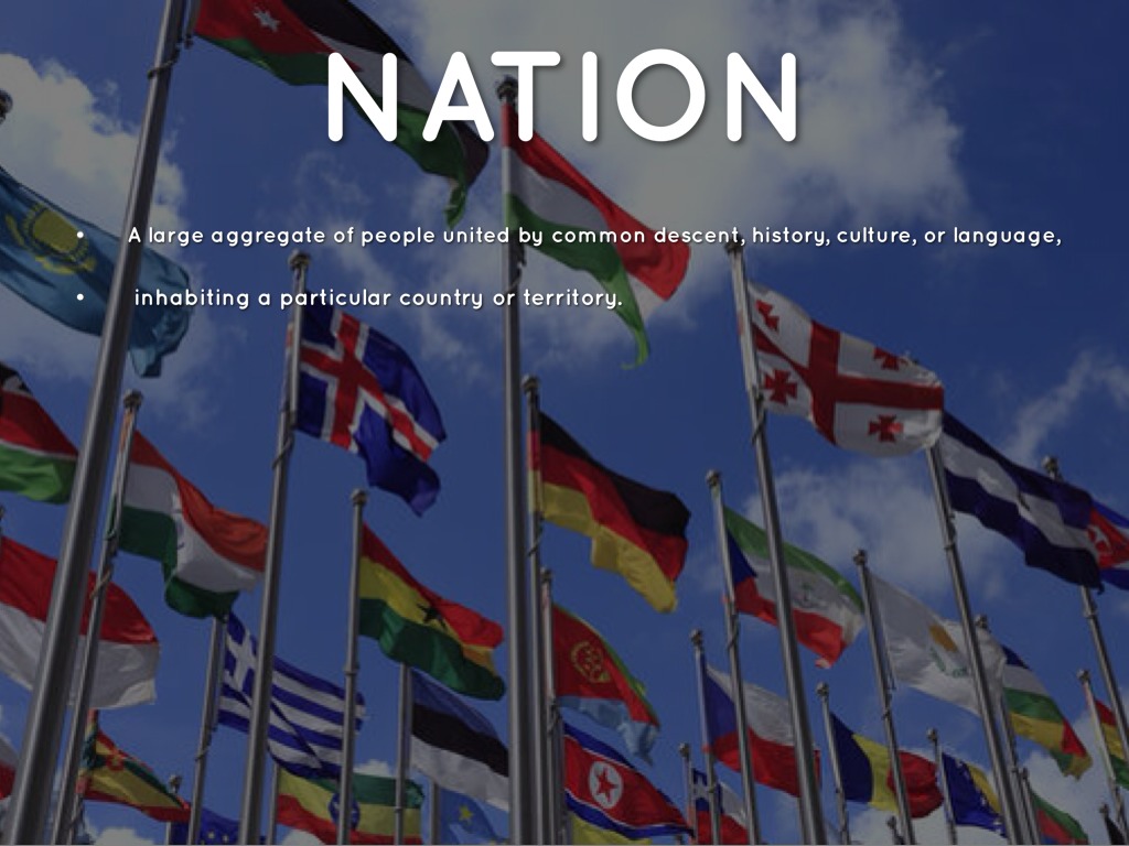 • A form of political organization under which a relatively homogeneous people inhabits a