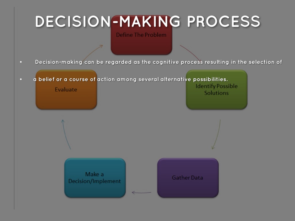 • Decision-making can be regarded as the cognitive process resulting in the selection of