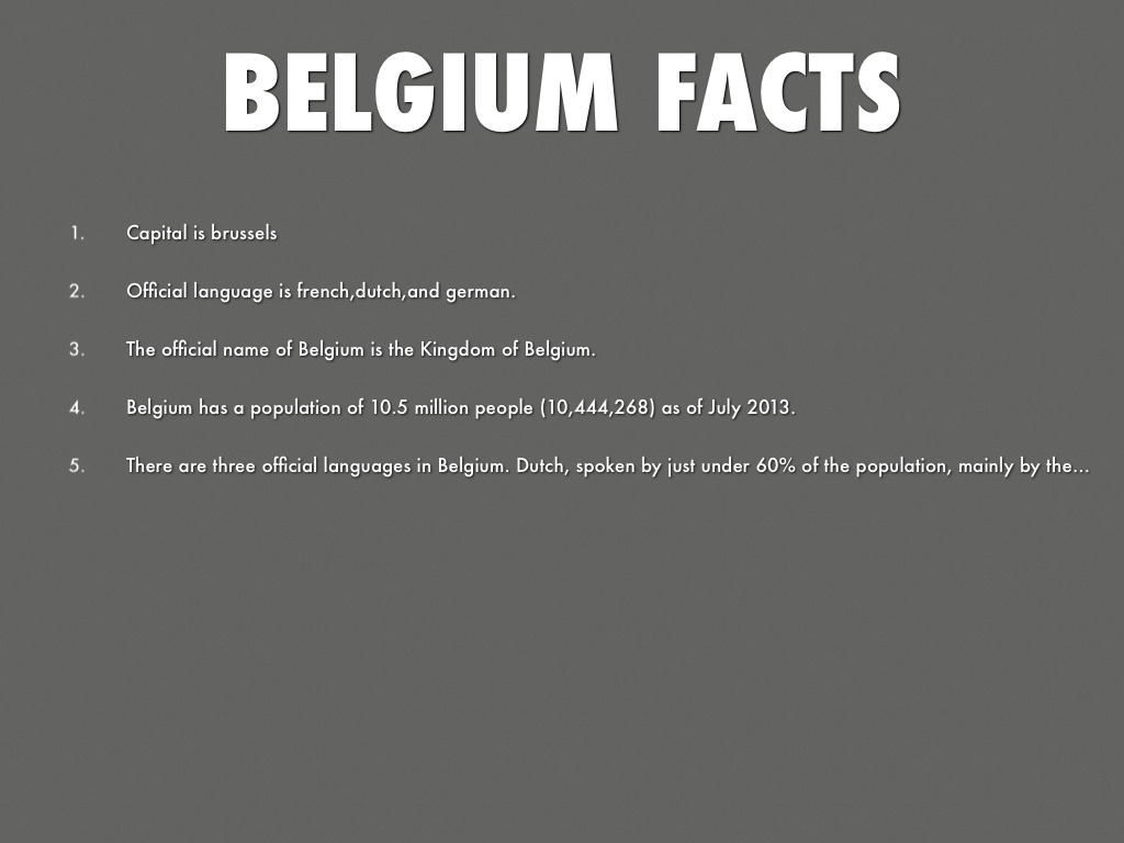 There are three official languages in Belgium. Dutch, spoken by just under 60% of the population, mainly by the Flemish to the north in the Flanders area. French is spoken by around 40% of the population and mainly to the south in the Wallonia region. There is a small group of German-speakers in eastern Wallonia.