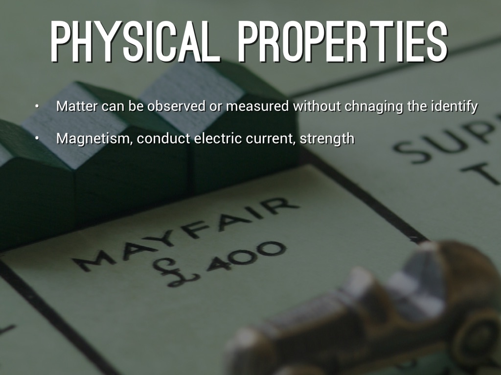 A characteristic of a substance that does NOT involve a chemical change is a ______ property.