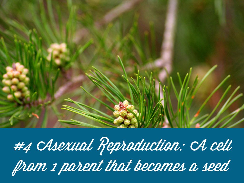 #4 Asexual Reproduction: A cell from 1 parent that becomes a seed
