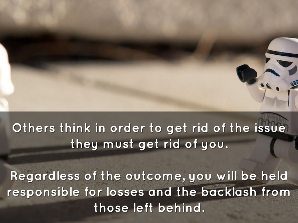 Regardless of the outcome, you will be held responsible for losses and the backlash from those left behind.