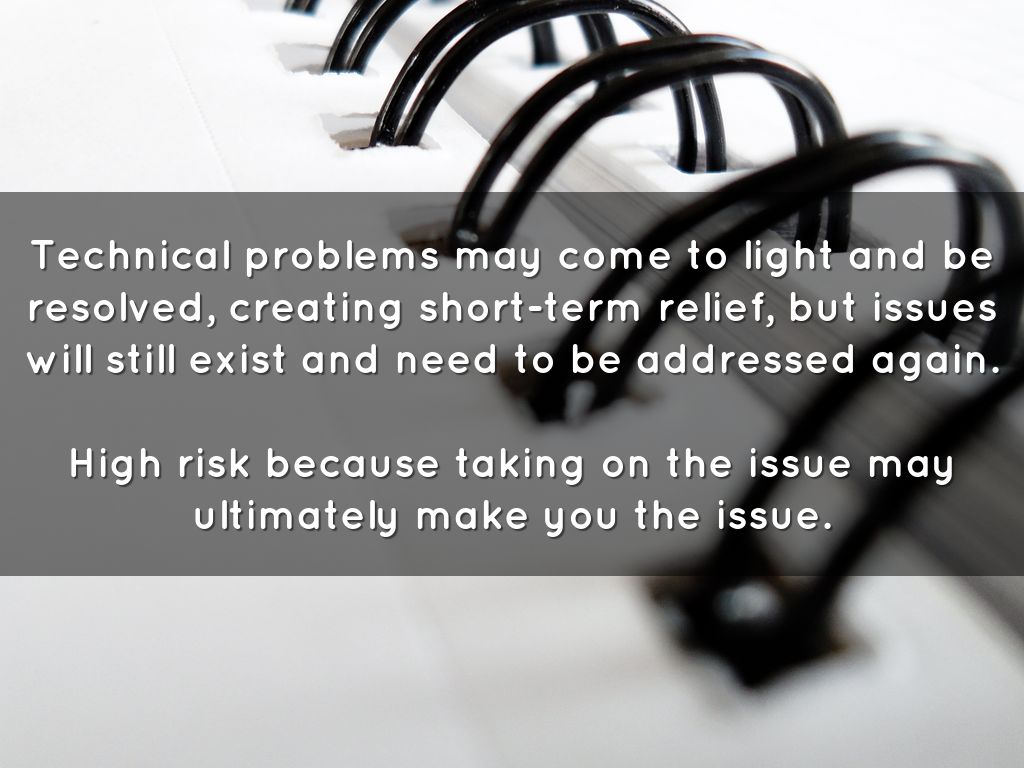 Technical problems may come to light and be resolved, creating short-term relief, but issues will still exist and need to be addressed again.