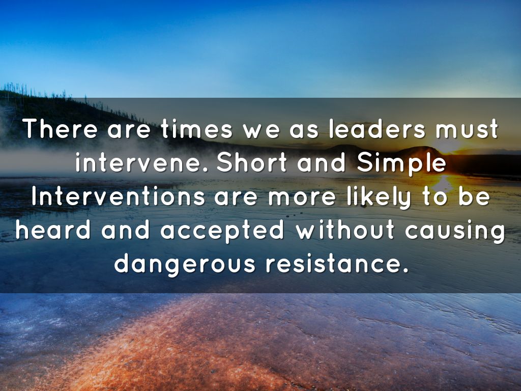 There are times we as leaders must intervene. Short and Simple Interventions are more likely to be heard and accepted without causing dangerous resistance.