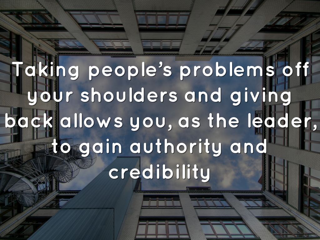 Taking people’s problems off your shoulders and giving back allows you, as the leader, to gain authority and credibility