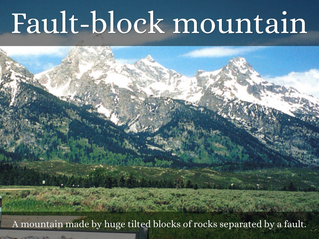 A mountain made by huge tilted blocks of rocks separated by a fault.