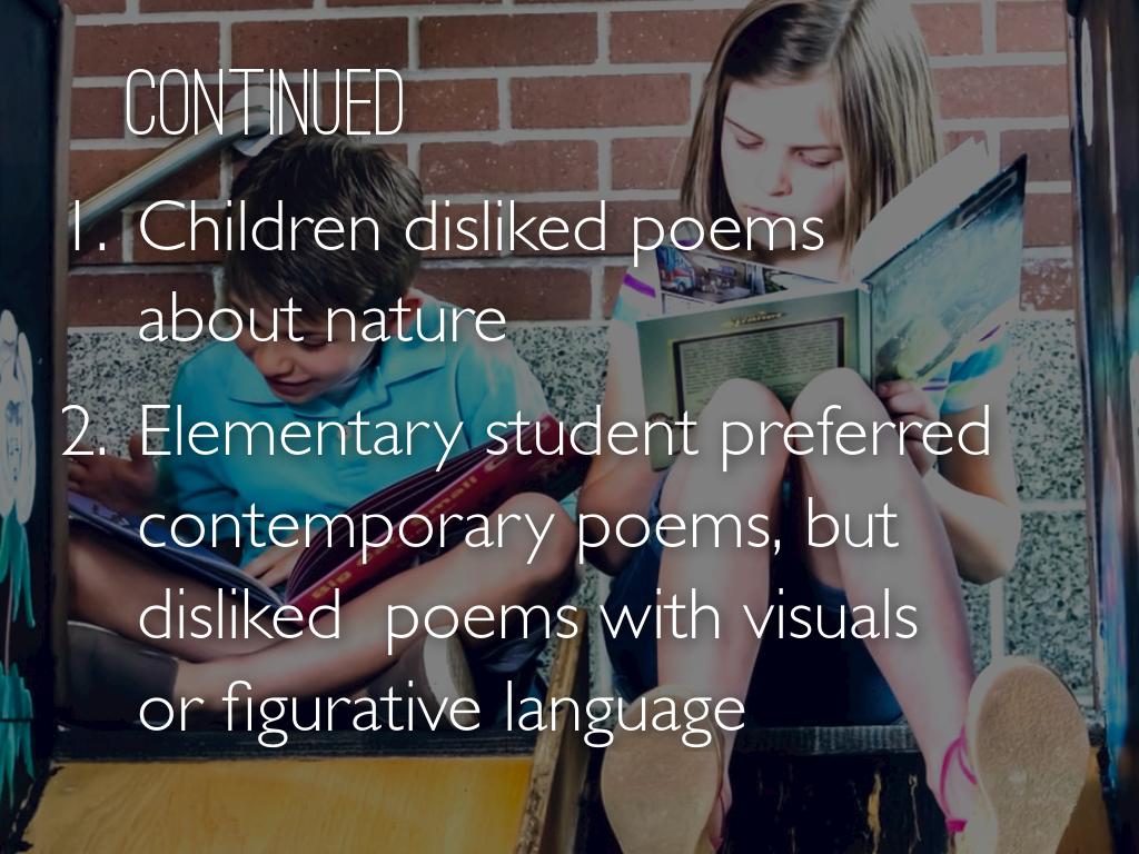 Elementary student preferred contemporary poems, but disliked poems with visuals or figurative language