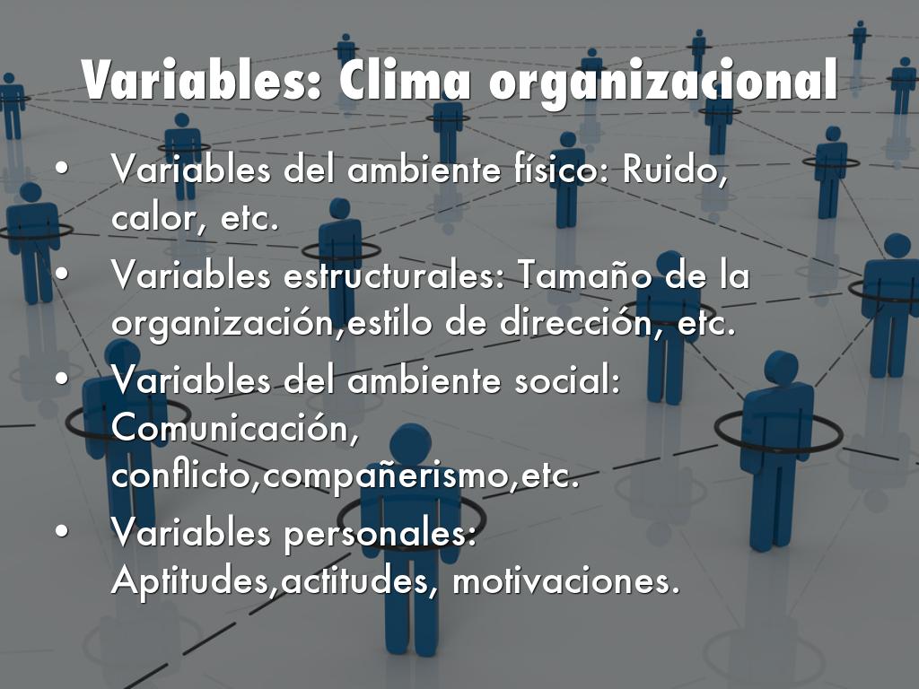 - El clima de una organización es afectado por diferentes variables estructurales. tales como estilo de dirección y políticas.