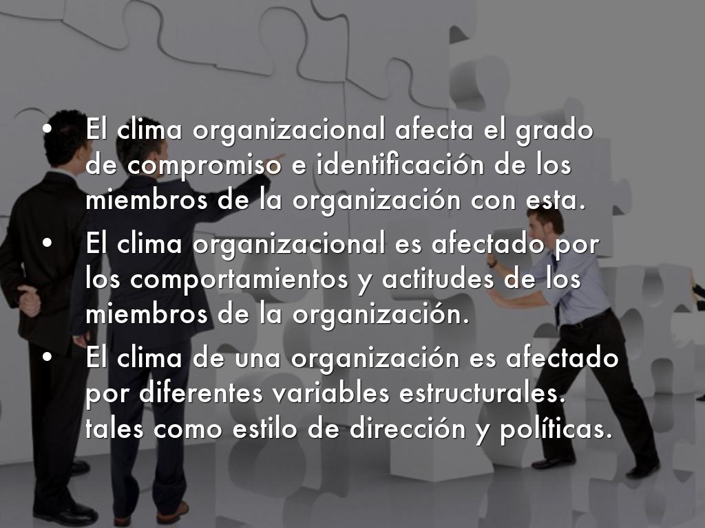 - El clima organizacional es afectado por los comportamientos y actitudes de los miembros de la organización.