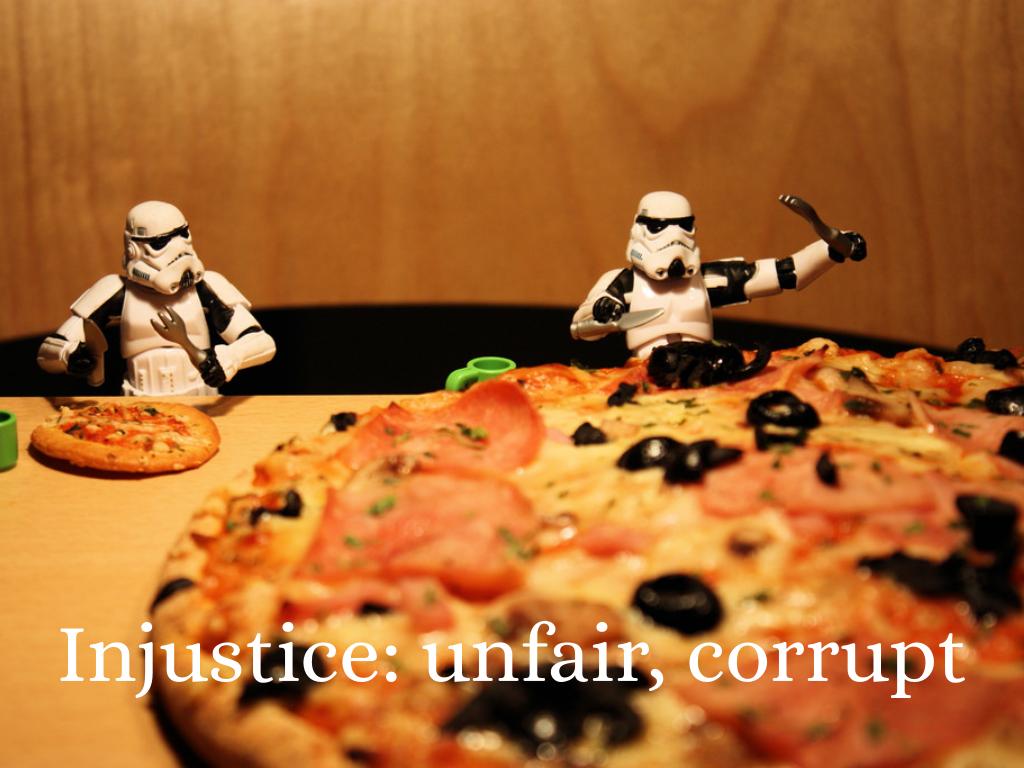 Injustice: unfair, corrupt