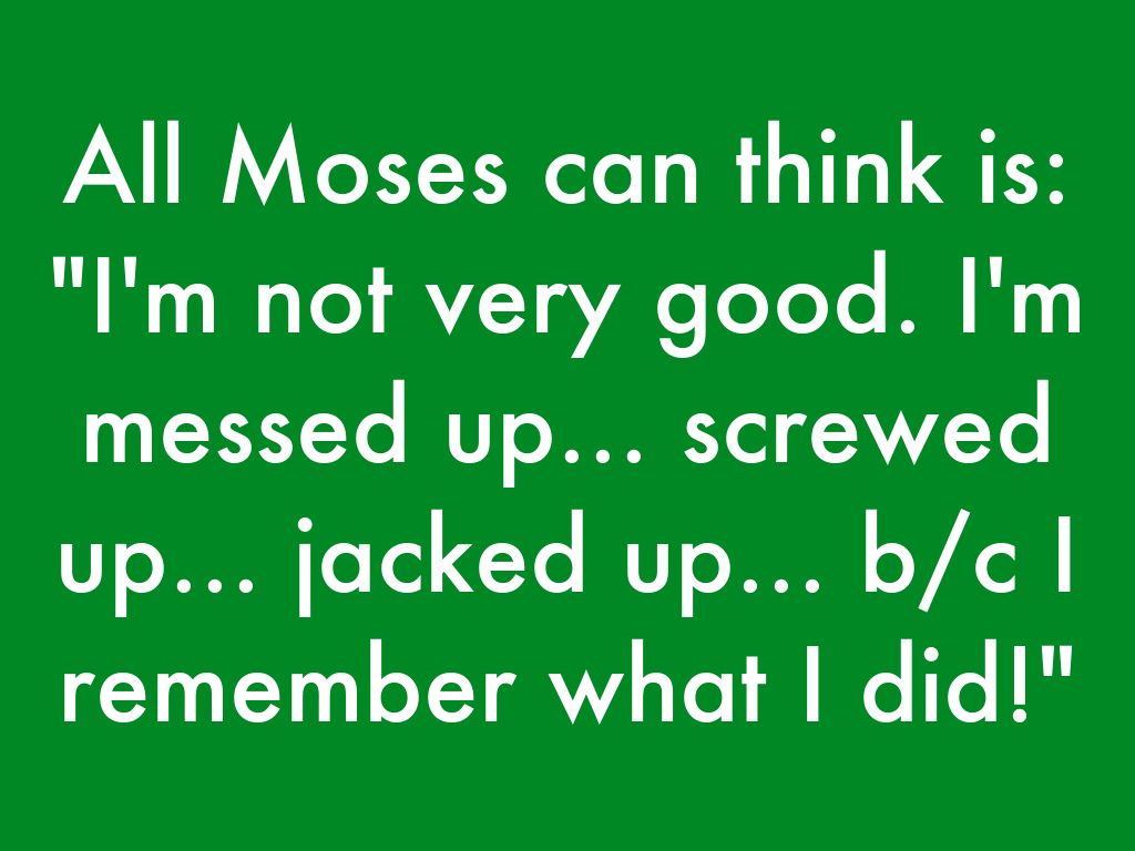 All Moses can think is: "I'm not very good. I'm messed up... screwed up... jacked up... b/c I remember what I did!"