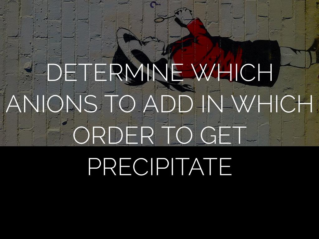 DETERMINE WHICH ANIONS TO ADD IN WHICH ORDER TO GET PRECIPITATE