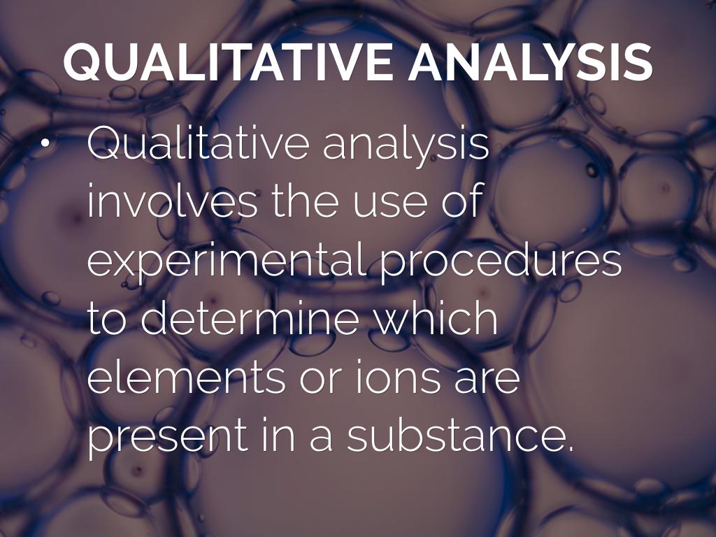 Qualitative analysis involves the use of experimental procedures to determine which elements or ions are present in a substance.