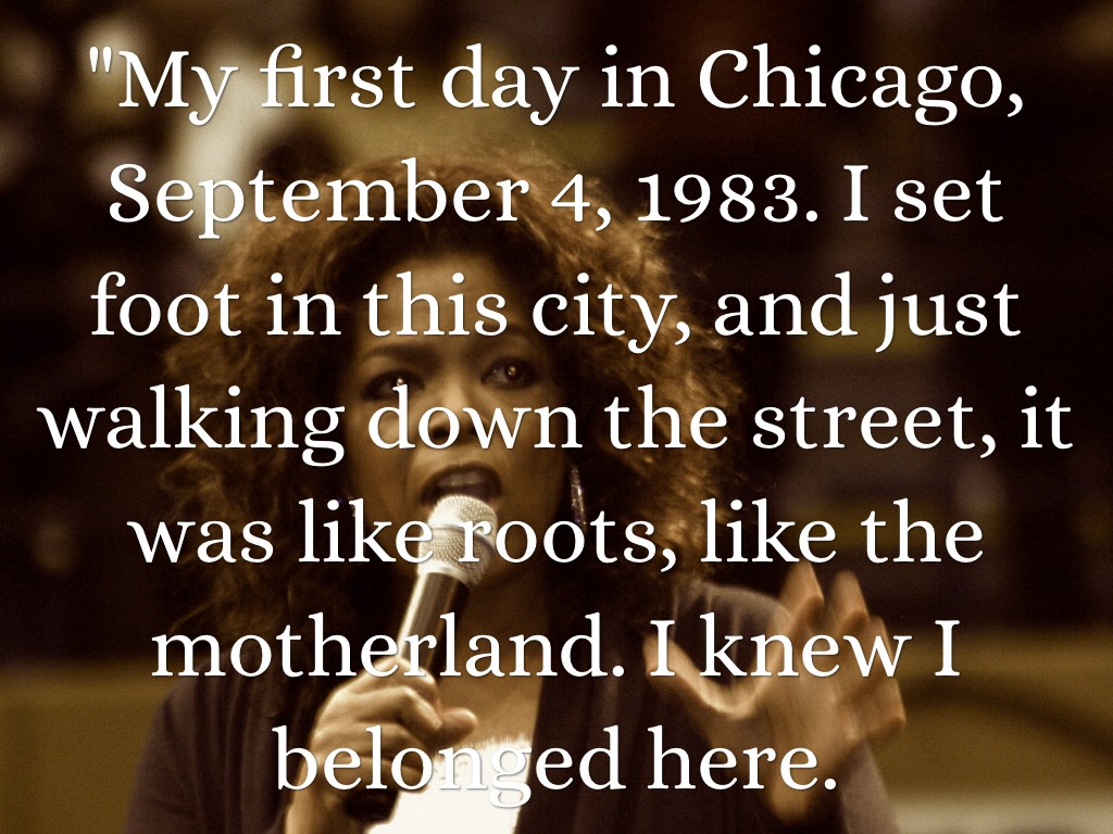 "My first day in Chicago, September 4, 1983. I set foot in this city, and just walking down the street, it was like roots, like the motherland. I knew I belonged here.