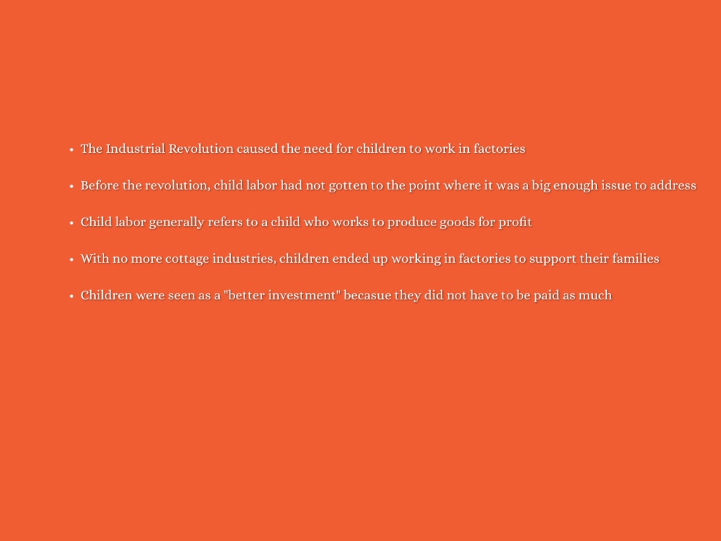 Before the revolution, child labor had not gotten to the point where it was a big enough issue to address