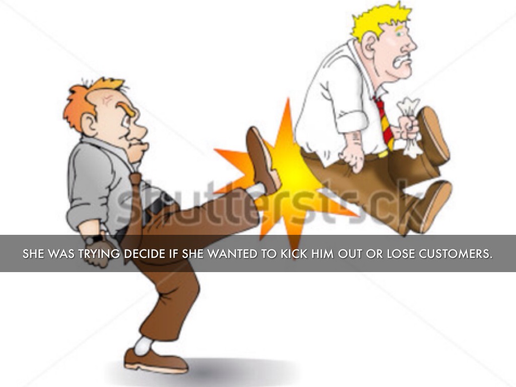 SHE WAS TRYING DECIDE IF SHE WANTED TO KICK HIM OUT OR LOSE CUSTOMERS.
