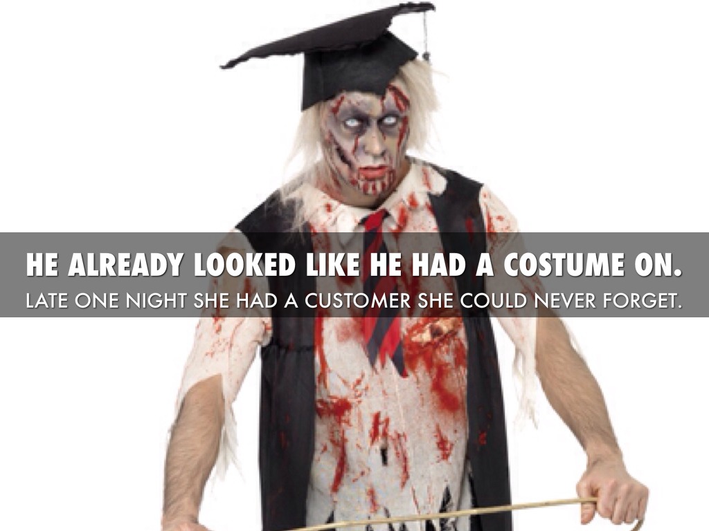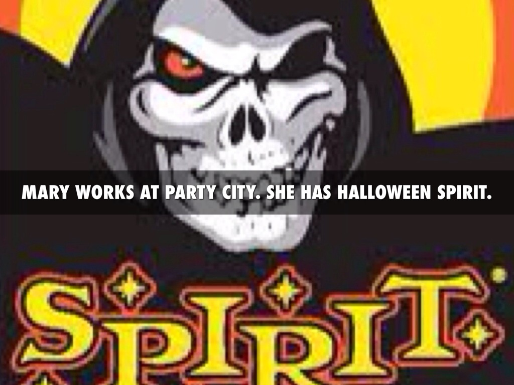 MARY WORKS AT PARTY CITY. SHE HAS HALLOWEEN SPIRIT.